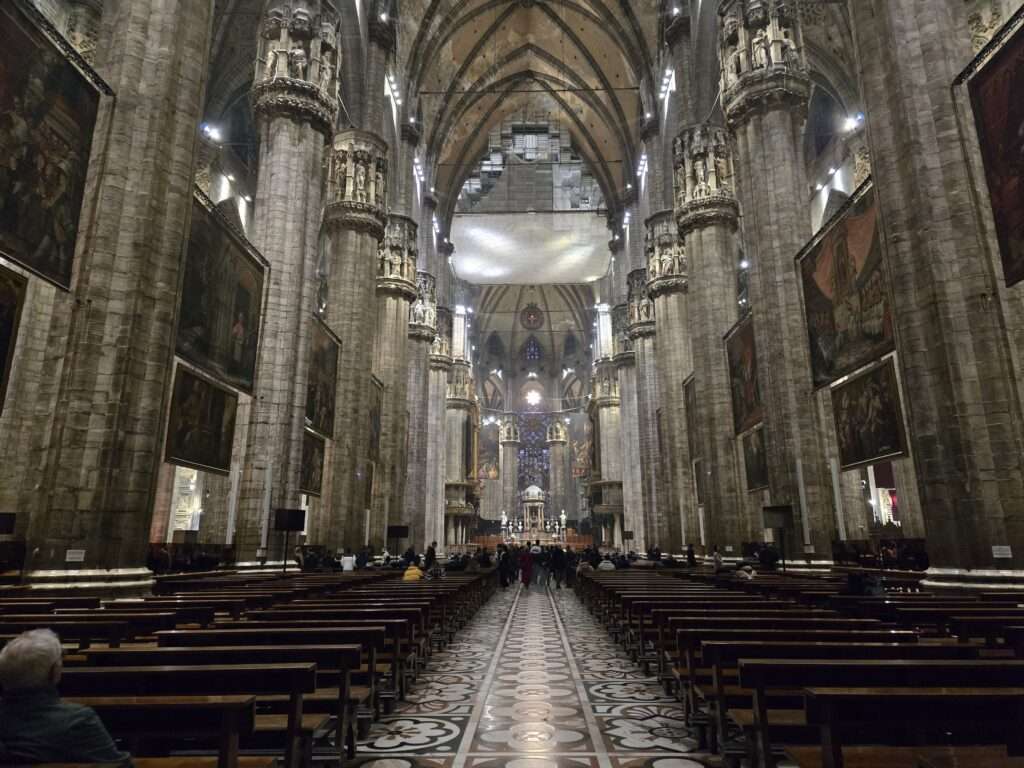 Photo above: The altar area inside the Duomo di Milano, where soaring columns and sculpture frame the heart of the cathedral.