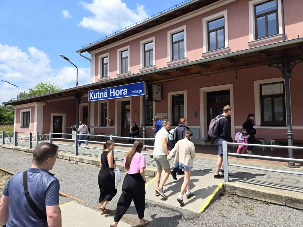 From “Kutná Hora–Sedlec,” ride the local train a few minutes to “Kutná Hora město” (above the old town). Taxi/bus also fine if timing is better.