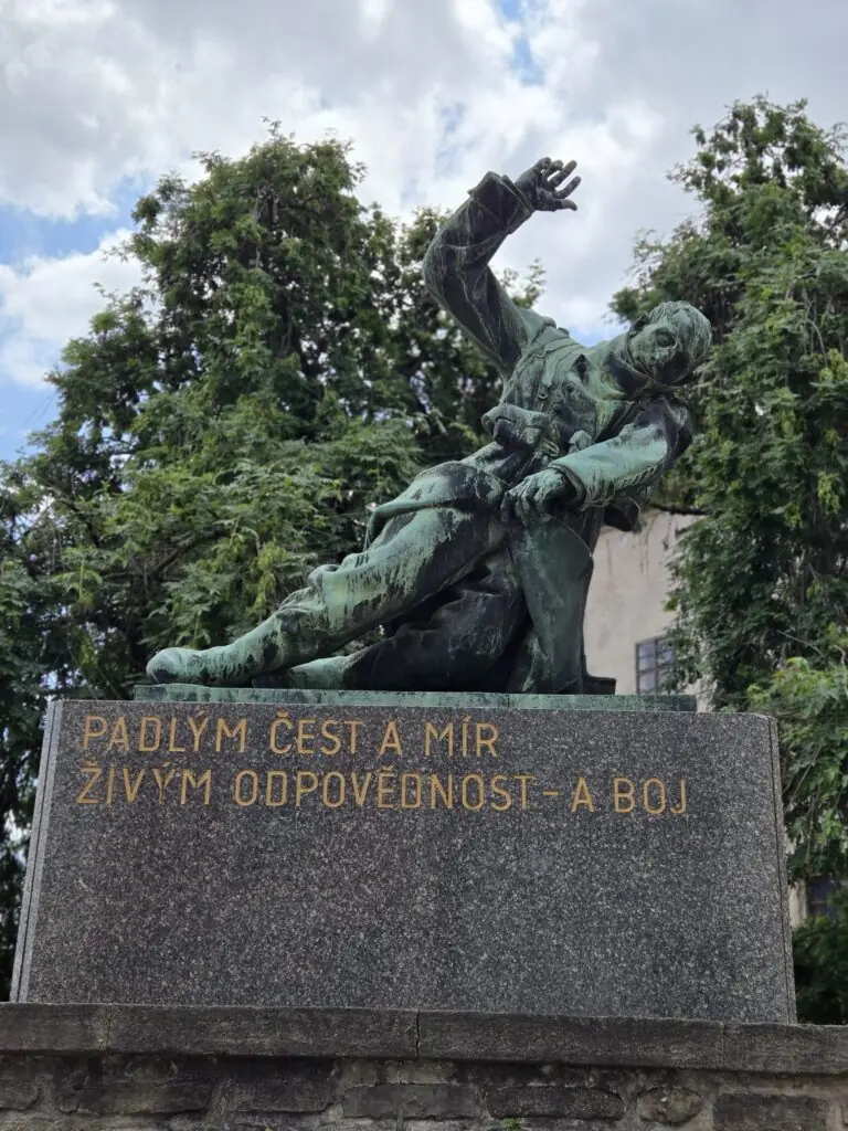 Photo above: WWI monument from 1933-1934 by Karel Dvořák and Pavel Janák. Shows a wounded soldier falling on his left side.
