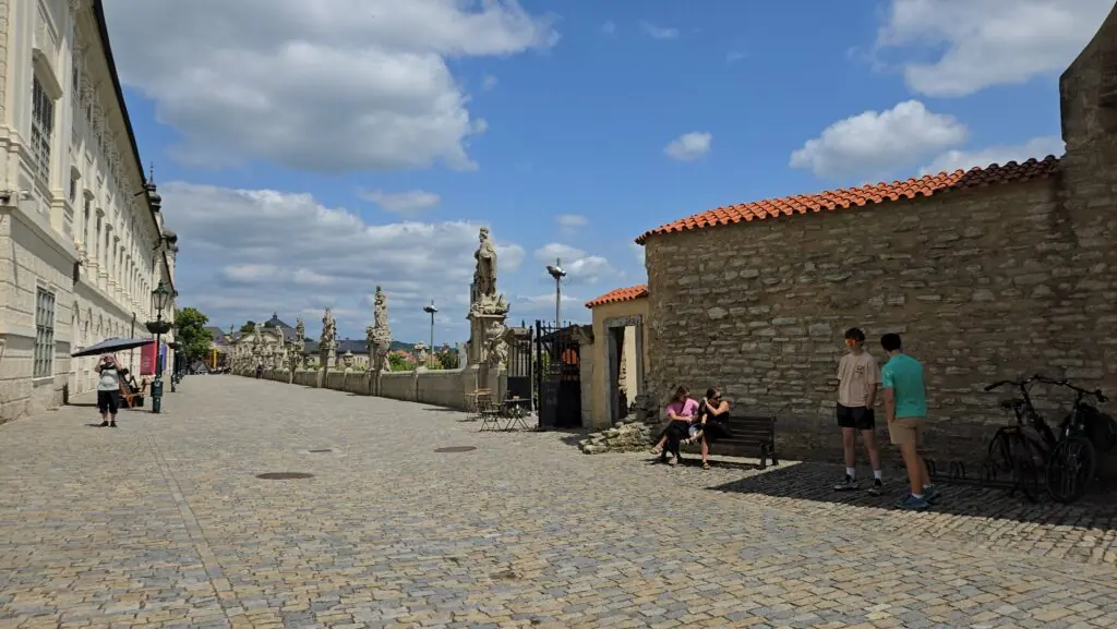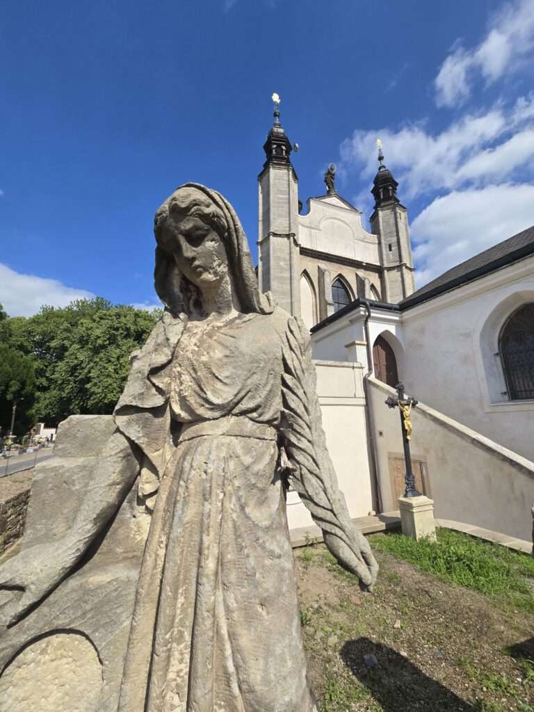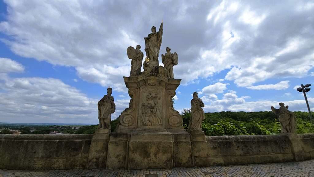 Photo above: The views slowed us down long before the cathedral did. Then came Barborská Street, Kutná Hora’s “Charles Bridge,” with 13 statues marching along the edge—the second is St. Barbara, miners’ patron.