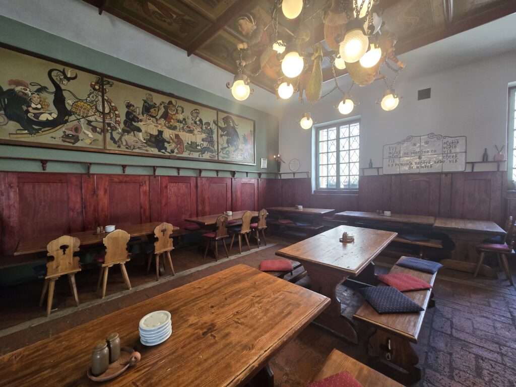 What to order: roast duck with red cabbage & dumplings, or wild-boar goulash; wash down with Kutna Hora lager on tap. Meals are around 230-400 CZK. See the full menu here.