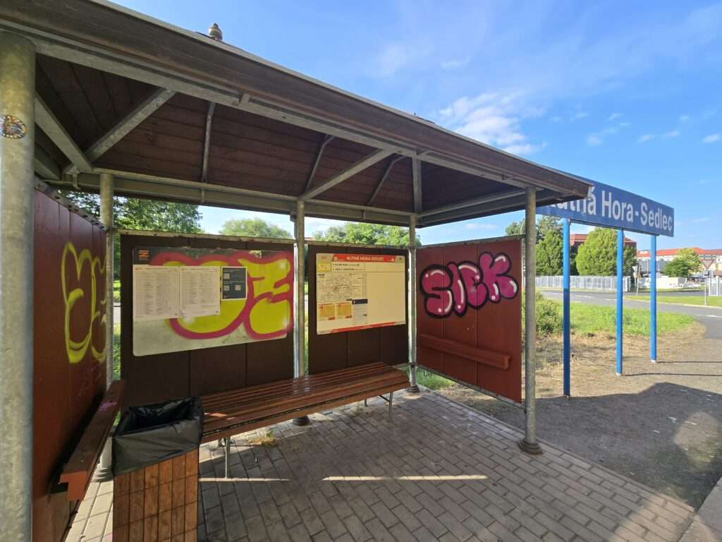 Photo above: The Kutna Hora-Sedlec train stop looks more like a bus stop – no wonder we missed it. We could barely find it even when we tried, using Google maps. This station is closest to the Bone Church.